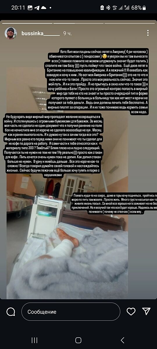 Да не . Военный с нуля. Сейчас в госпитале. Нога под вопросом. Кстати, вернулся из Польши и пошёл добровольцем. А вы где ? Страница открытая. Зайдите ему это в личку напишите )