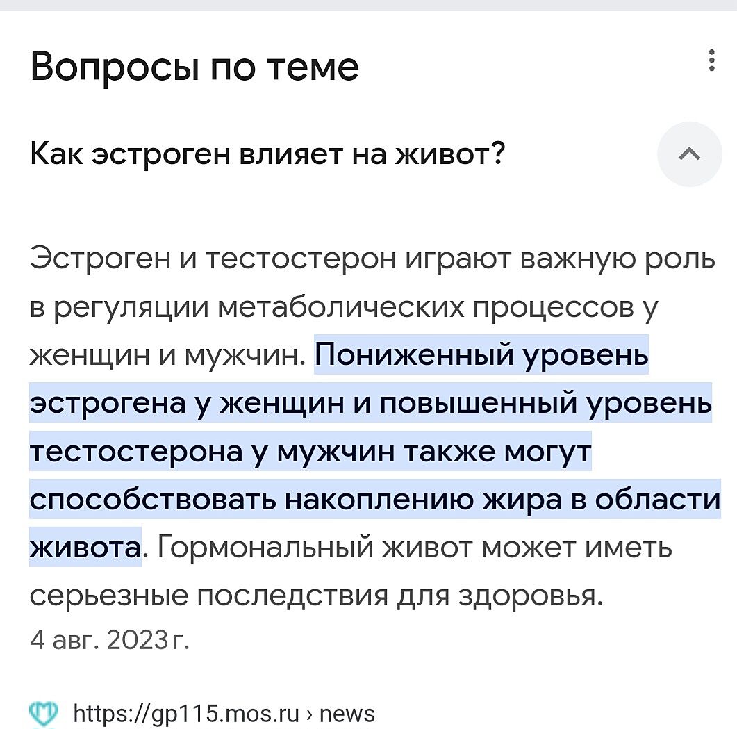 Нехватка эстрогена , а не доминирование, даёт рост живота.