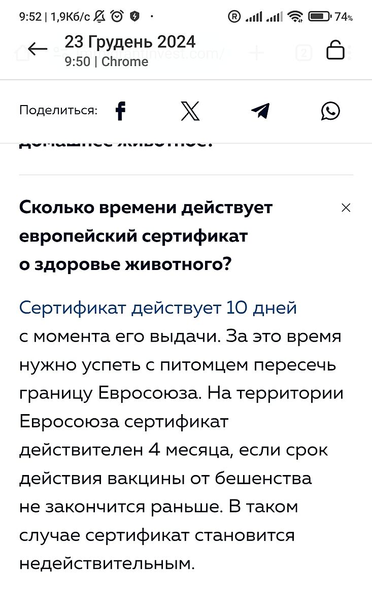 Ветеринар сказал, что этот сертификат действителен 10 дней.