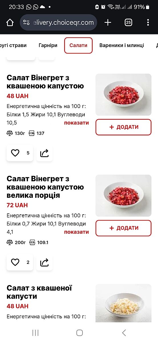Я зашла. Винегрет - 72 грн.
