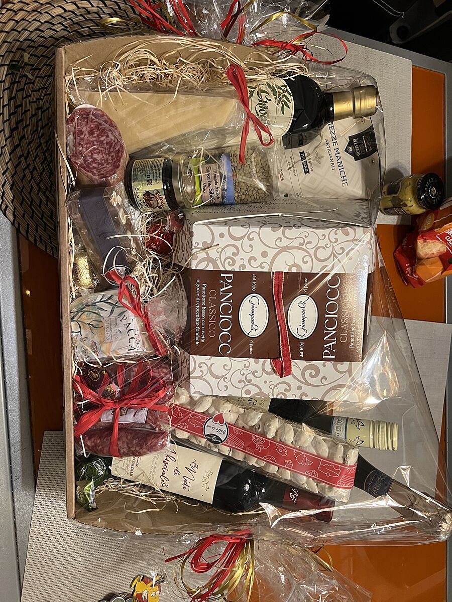Я живу в Италии. Здесь принято дарить продуктовые корзины. Сегодня муж очередную принёс. Штук 10 в этом году подарили. Мне нравится