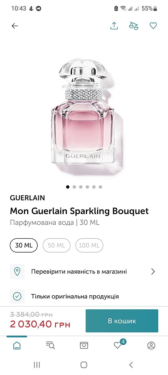На первом фото Guerlain Mon Guerlain Sparkling Bouquet. На втором именно Mon Guerlain, туалетка. Оба флакона оригиналы.