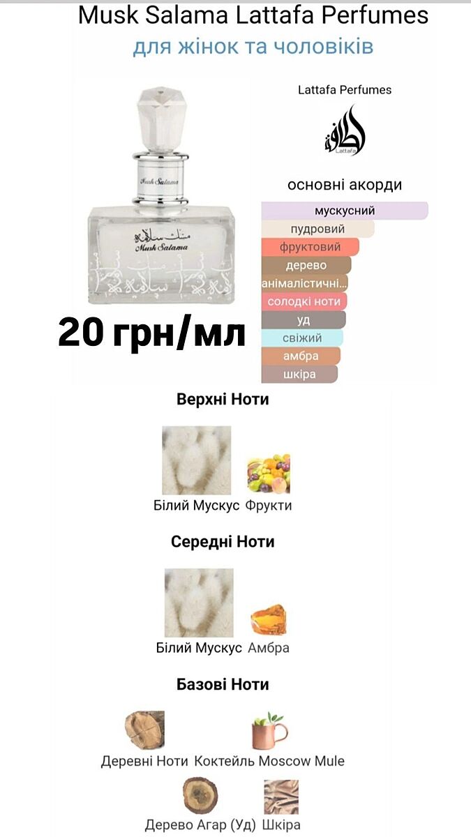 Мені подобається напрям ароматів типу Кірке і Ерба пура-) схожі по звучанню є в Єві від Фаб´єн Марше Фрутті маск і ось я замовила арабчика від Латтафи - Маск Салама, кому по смаку такі аромати затестіть принагідно.