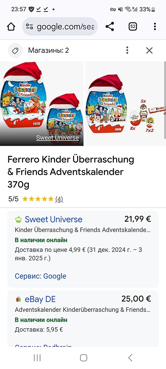 Я сама адвенти люблю, але косметичні) розумію в чому кайф і прикол. Але це реально за таке дуже дорого. Я такі як на фото бачила по 8-9 євро, але там одні цукерки. За нього то також дорого, але не такі великі гроші, щоб просто побавитися Як вище скріни скидали і як у автора 22 єро, то ще також більш меньш нічого. Але ж не 40 евро