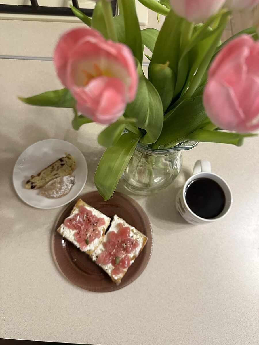 Нічого не хочу поки, вчора переїла. Випила водички з медом і лимоном, кефір і каву змусила з бутером маленьким зʼїсти