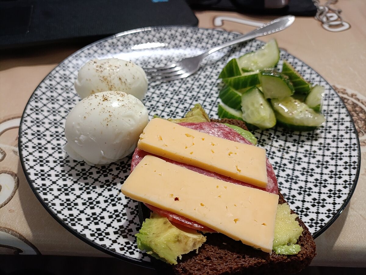 Вчора була у мами. З собою взяла тільки тушковану капусту. Тому сніданок бутерброд з маслом+яйце+тушкована капуста. На обід будуть рибні котлети. На вечерю спечу півкурки, якщо буде світло. Все скромно.