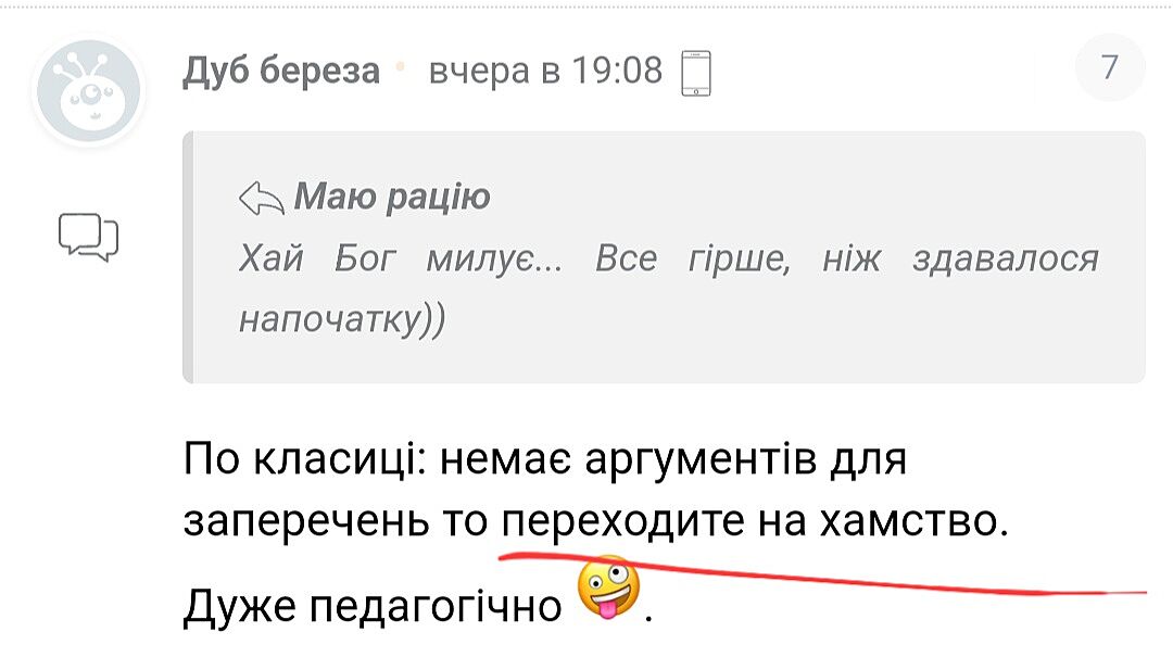 Цікаво, в чому ж було хамство? За що Ви обзиваєте людину? За її позицію? Всі мають думати так, як Ви?