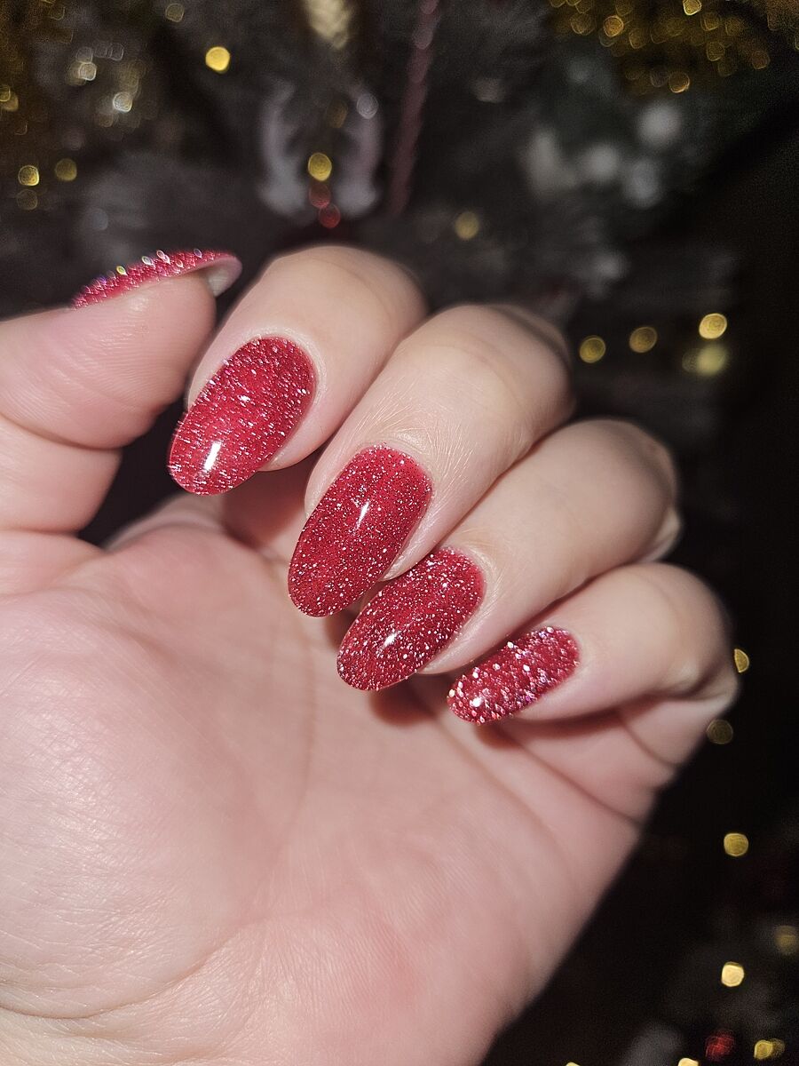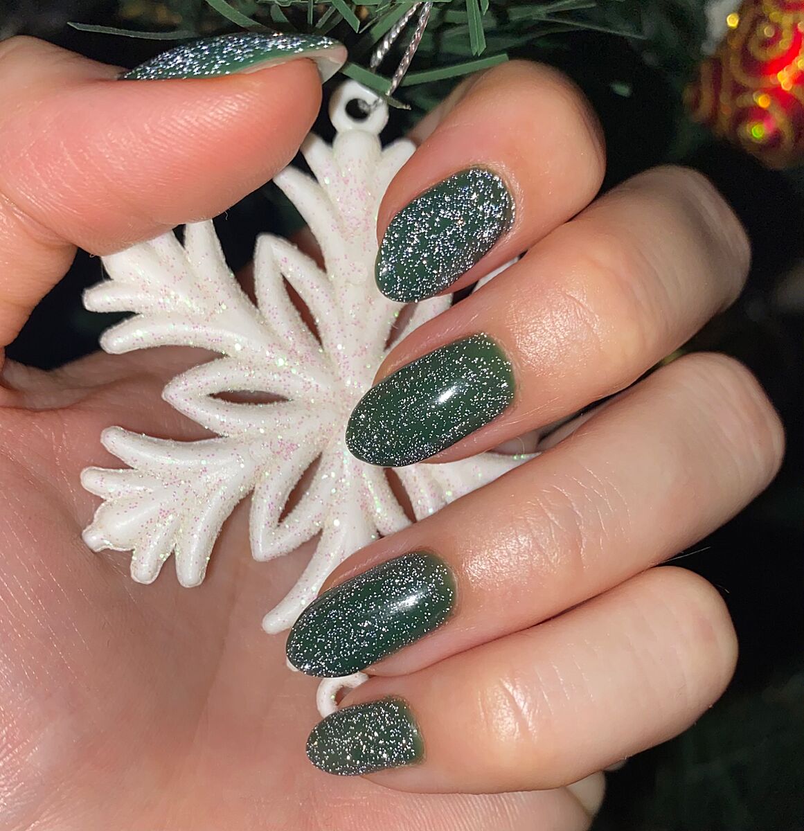 Зелений з світловідбиваючими блискітками😍 не можу перестати любуватись цим переливом, виглядає дуже гарно 😍