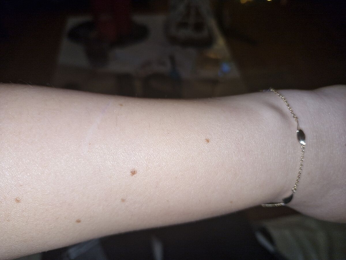 Сходіть про всяк до лікаря, у моєї доньки такі були декілька штук, якийсь час хвилювалася, а потім перестала звертати увагу, навіть не знаю чи вони є, завтра гляну и.