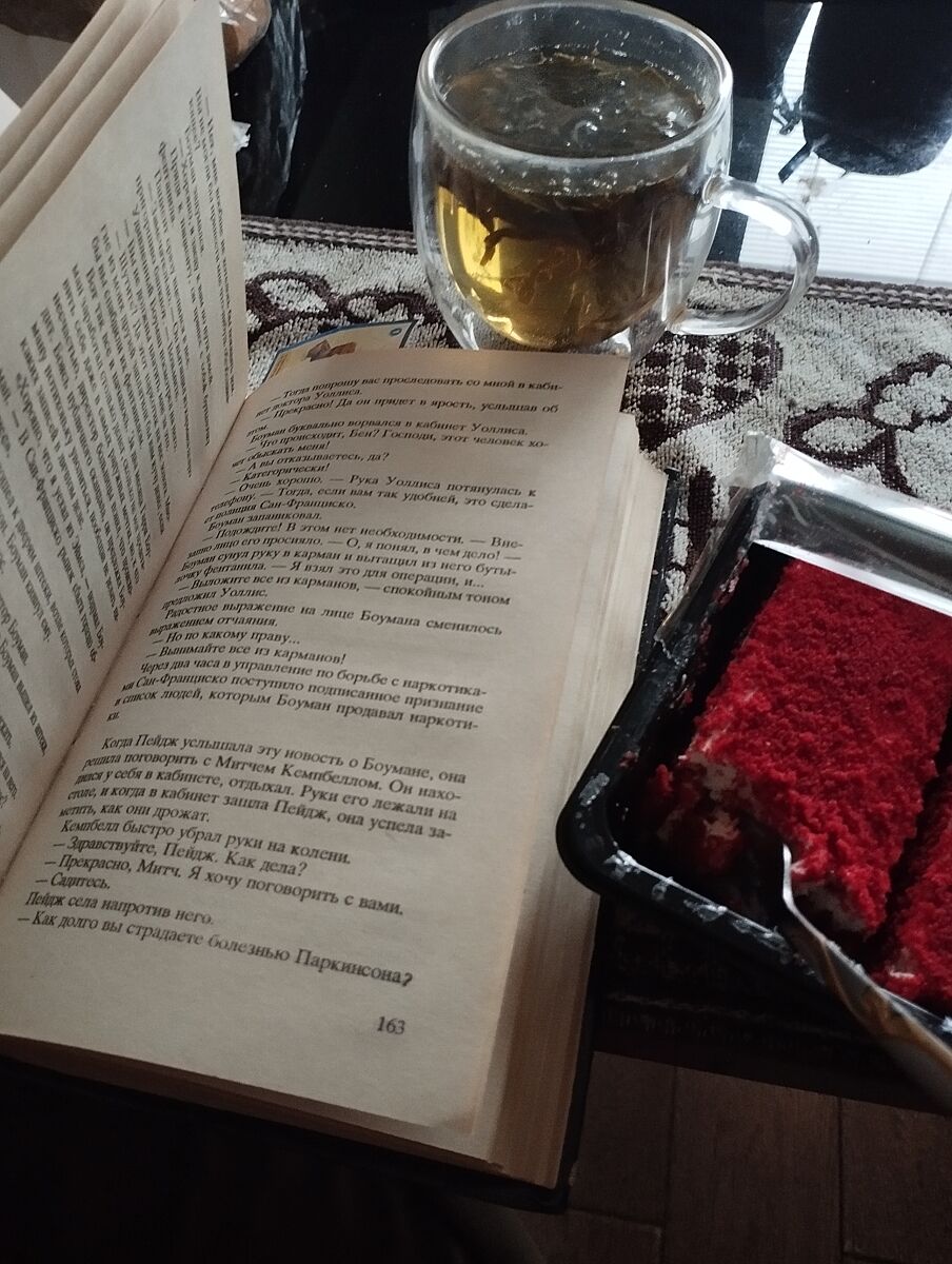 Предновогодние воскресенье так хорошо что скоро весна)) у меня зелёный чай, Ред вельвет Нонпарель кстати очень гадкий и Сидни шелдон