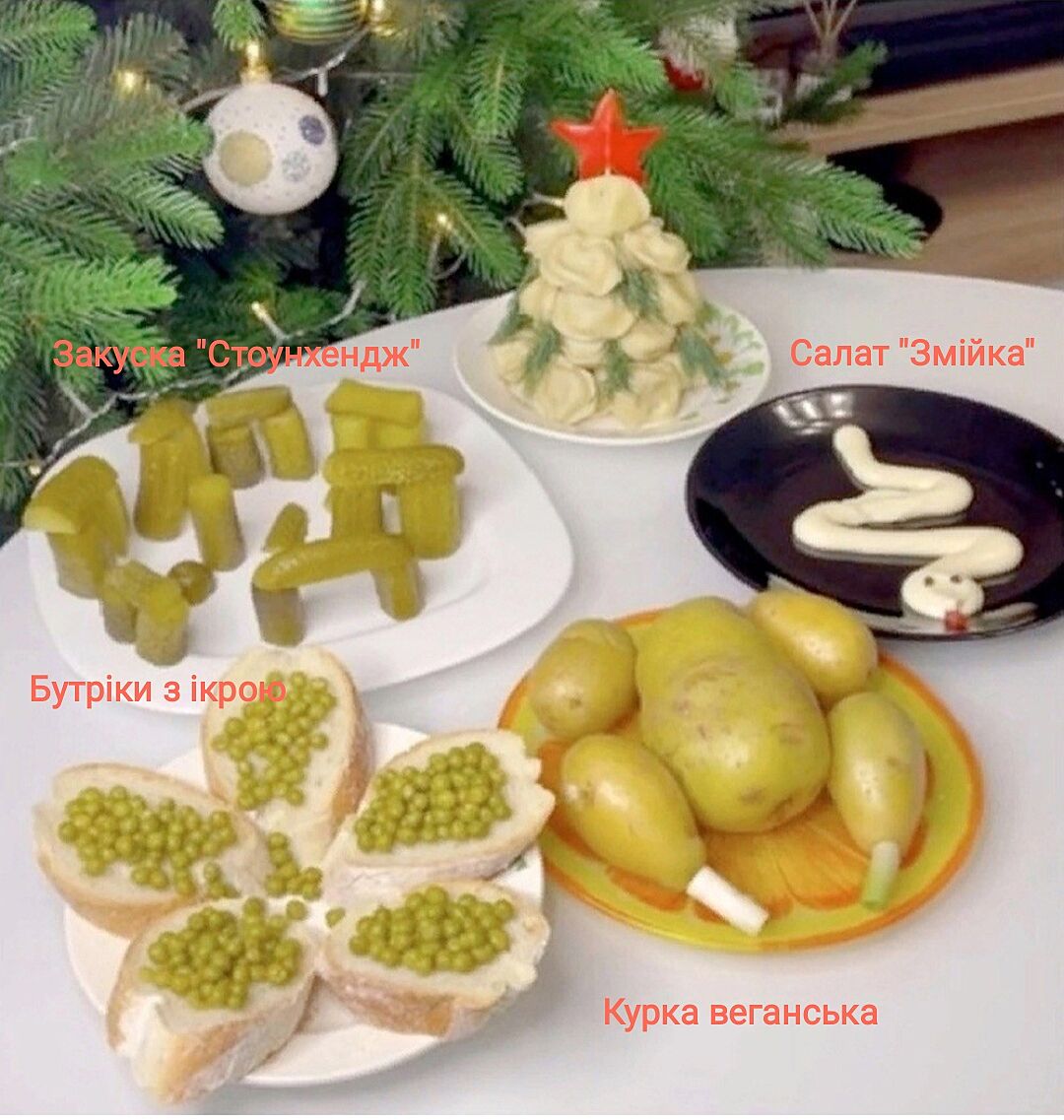 салат новый какой -то с пармой , кедровыми орехами и сыром. Осетрину стейки со сливочно - икорным соусом, бутеры с икрой и тунцом и вялеными томатами, фаршированные грибы в беконе, ассорти элитных сыров и фруктов, рисовые корзинки начиню сливочным сыром с креветками и клюквой, и заказада у кондитера торт в виде елки муссовый с хрустящим шаром манго маракуйя.