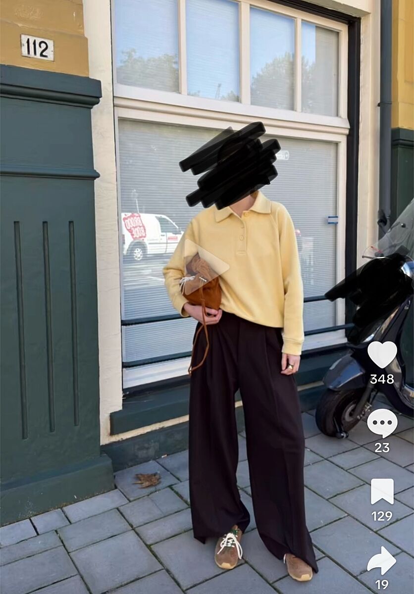 ОЧЕНЬ стильно, по-европейски, судя по кедам еще и достаточно дорого, жаль я с моим ростом 157 не могу себе позволить такие широкие брюки
