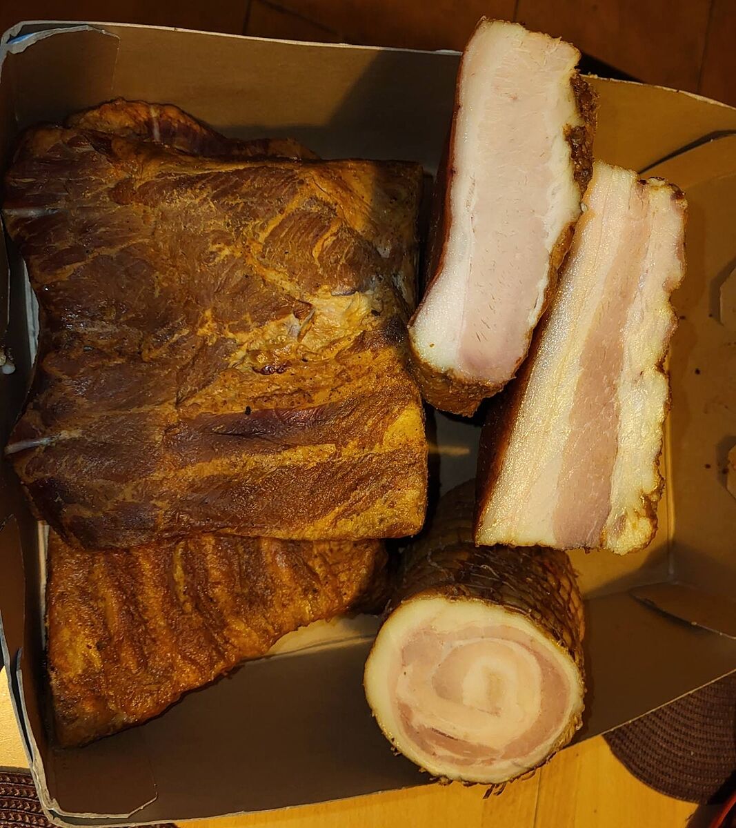 Я не покупала. Муж купил запеченную грудинку. Но на фото еще и рулет, гадость одним словом. Много сала.