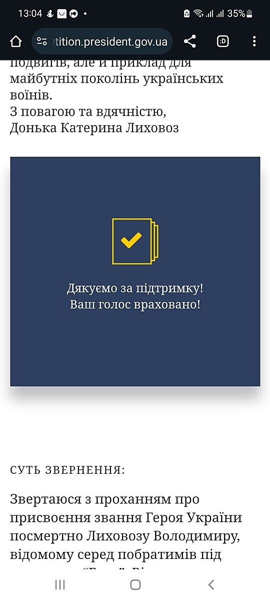 Його сім’я мріє про справедливу нагороду, яку він по-справжньому заслужив. Перейдіть за посиланням у коментарях і проголосуйте. Одна хвилина вашого часу – це дрібниця порівняно з 10 роками, проведеними у вогні війни.