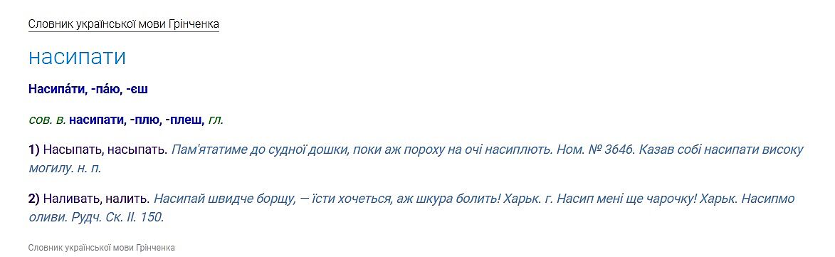 В українській мові їжа насипається, навіть та, що ллється