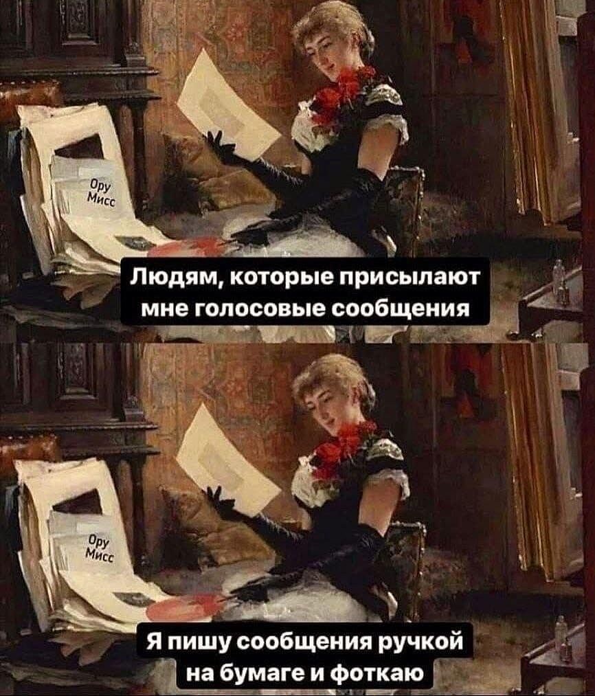Считаю это полным неуважением собеседника. Я должна все бросить, включить звук и слушать, что она мне там соизволила надиктовать.