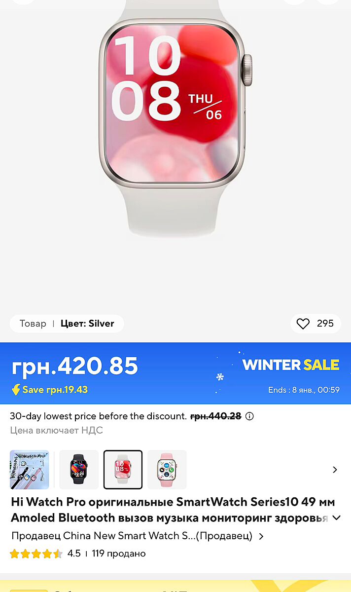 один раз купила в Інсті, жах, викинуті гроші. до того були мі бенд. але найбільше звичайно подобаються епл вотч. купила в кінці 2022, не шкодую зовсім