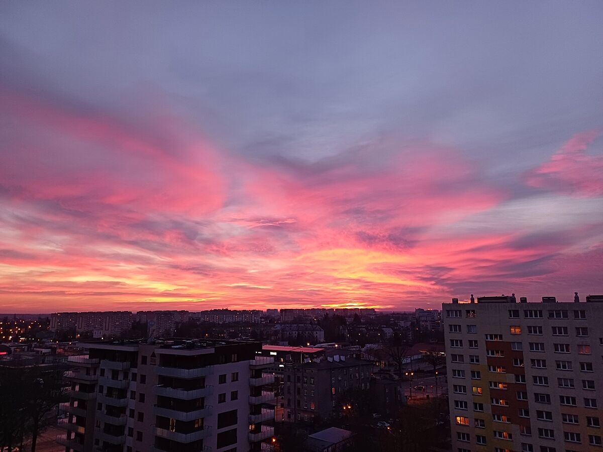 Небо было красивым, только в тоже время каким-то необычным, я никогда такого, как вчера и сегодня неба не видела.