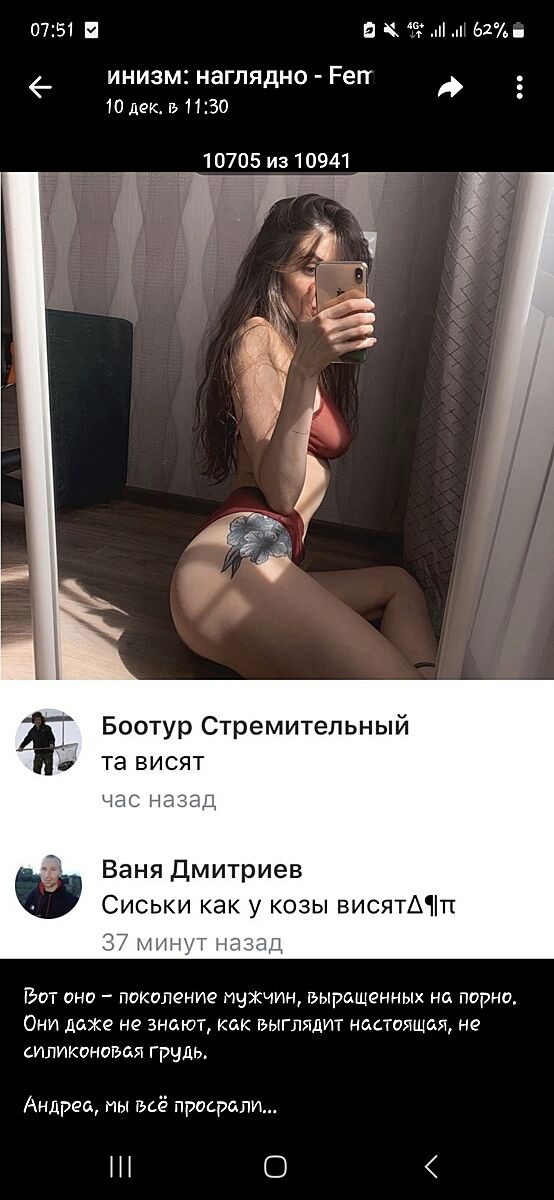 Вы видели этих мужиков? Они же стремные. Только страшные мужики пишут о женщинах гадости-это закономерность.