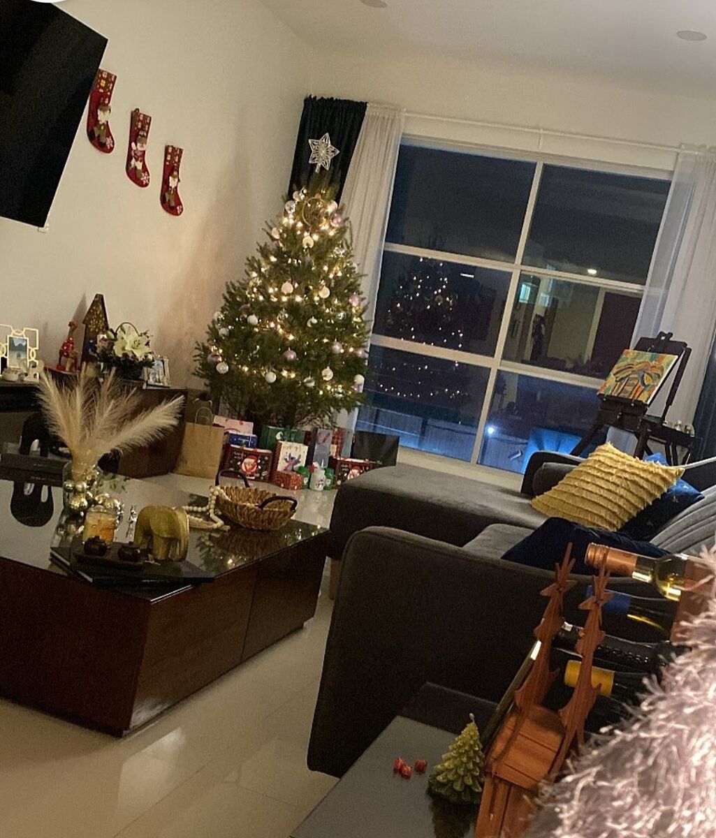 Оставила бы место для елки на праздники. Или большой цветок в вазоне