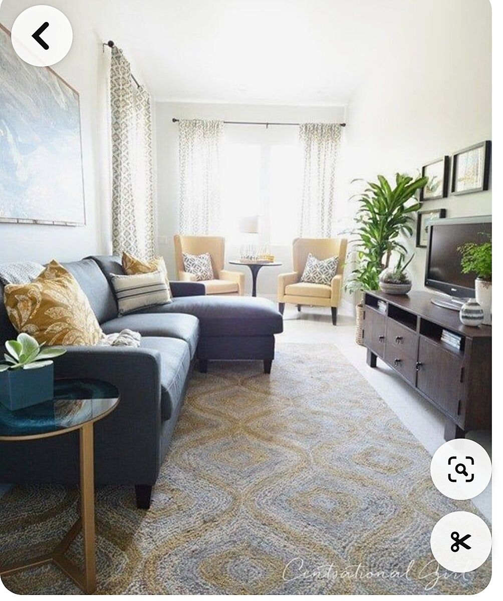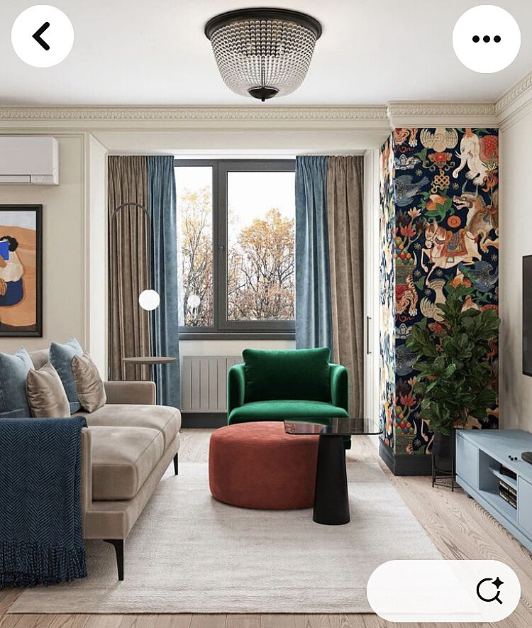 Треба вже зараз розрахувати бюджет: який саме диван, люстра, тв, штори, стеля і т.ін. плануються. Толку з картинок зі штучними камінами, вигнутими qled tv і деревʼяними жалюзі? Дивіться що вам підходить, яких воно габаритів і грайтесь самі або з дизайнером.