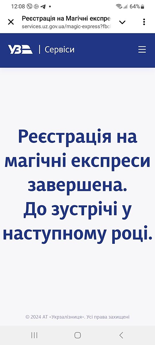 Вже закрита реєстрація.Потяг ходить до 10.01.