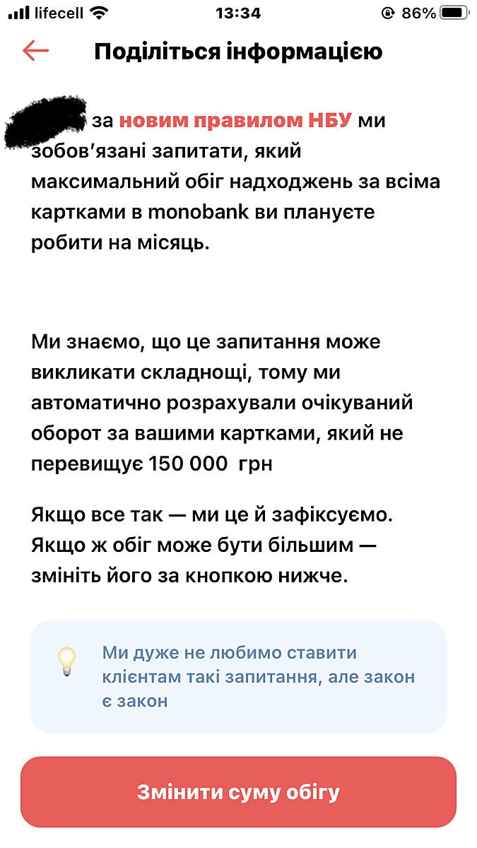 какой лимит? банк вас так косноязычно уведомил о том, что фин мон не спит