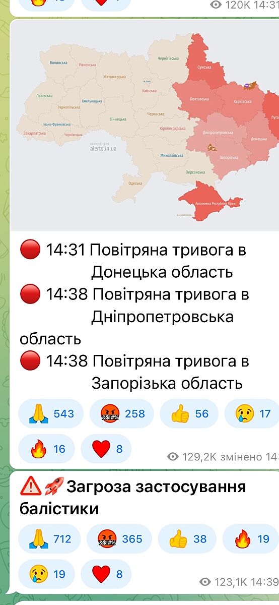 Я працюю віддалено, сьогодні навіть в коридор не виходила жодного разу. Прочитала тему, думала може я щось пропустила. Та ні, передивилась, було пару дронів, як я вище писала. І взагалі коли це до нас летіла балістика з Запорізької області 🤦♀️