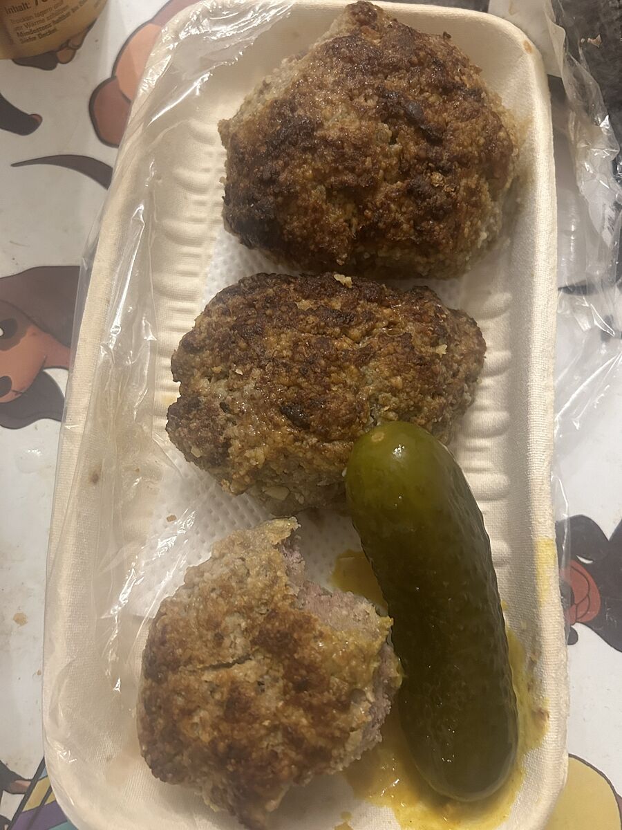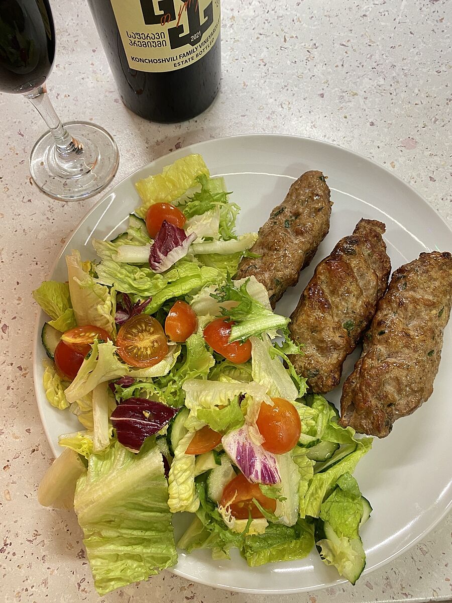 У меня была каша пшеничная, тефтели и салат свежий. Налопалась😁