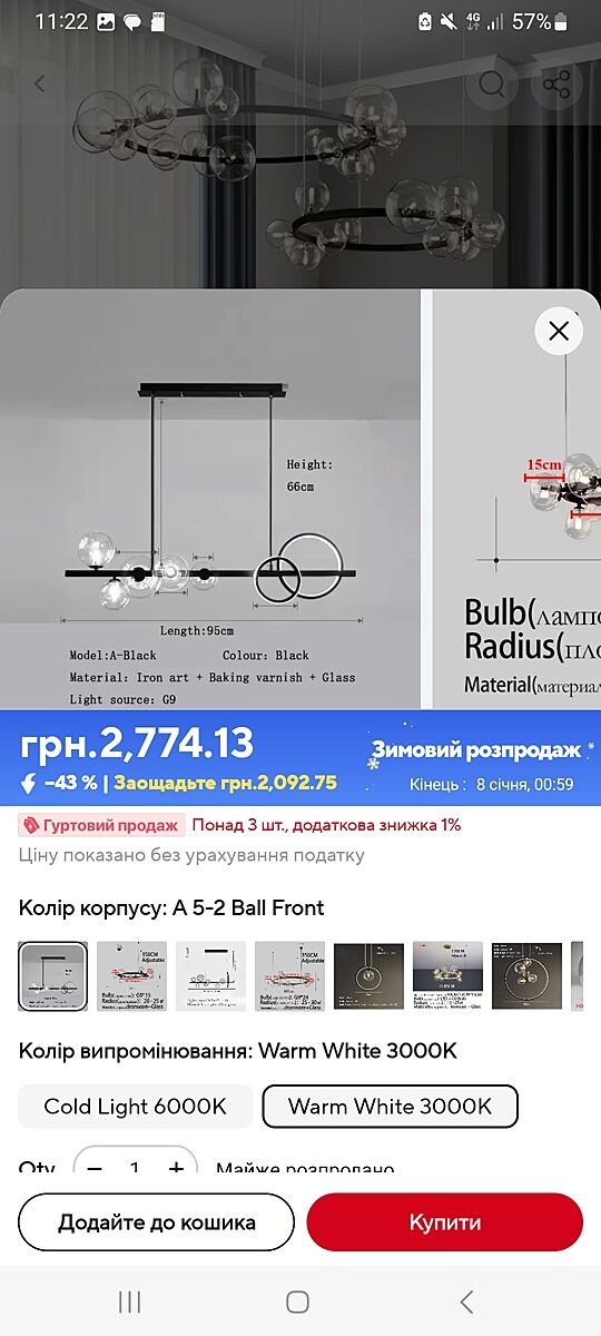 Люстру брала на алике. Внешне такая же как у нас сильно дороже но такая вся хиленькая, резьба еле еле, провода тоненькие, гемор для того кто устанавливал.