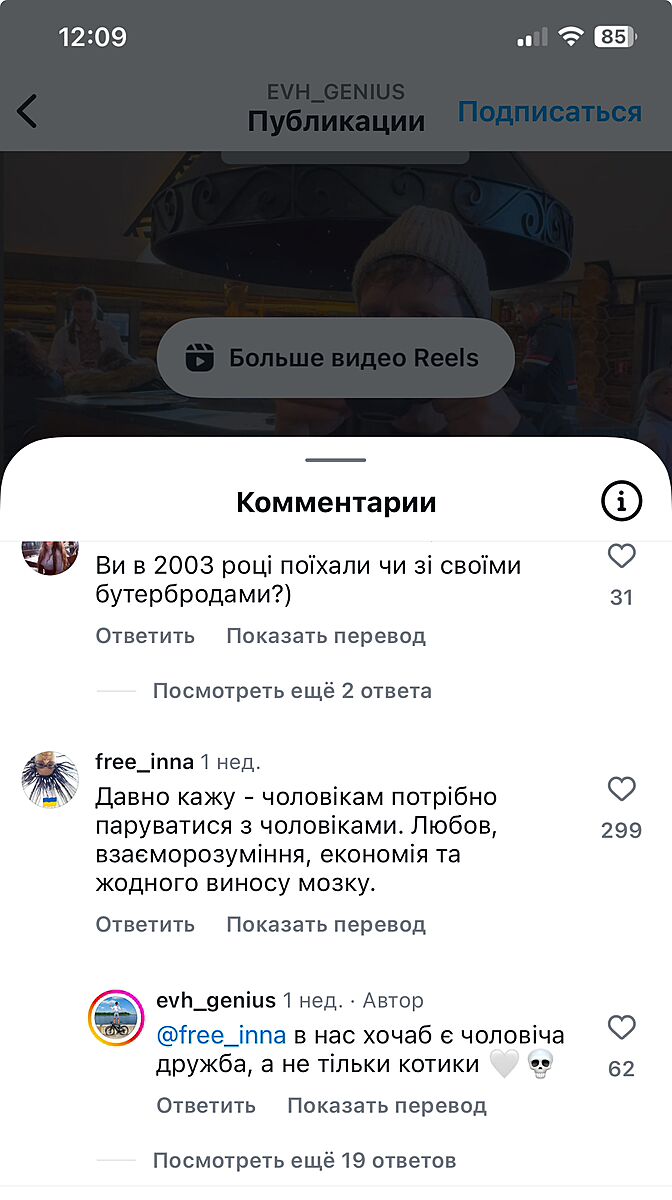 Скріншот з інсти коментів під дописом