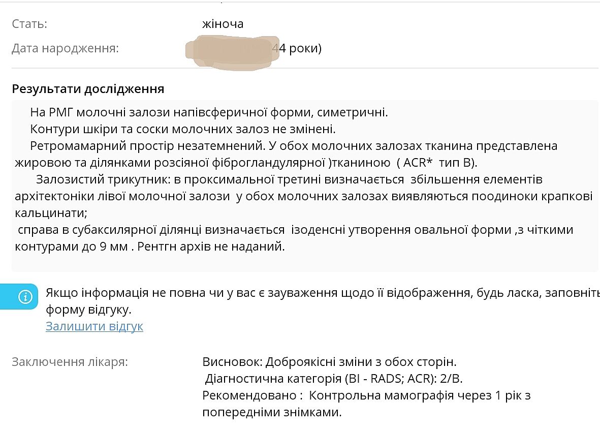 В жовтні виявили «кісту» на УЗД молочних залоз.
