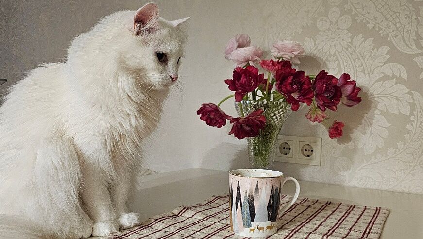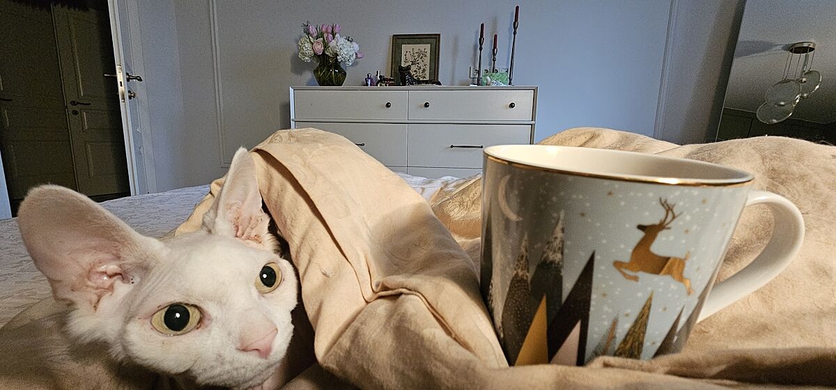 Мы с ней и кофе пьём, и просто она там спит... сфинксы скорее пробегом через стол
