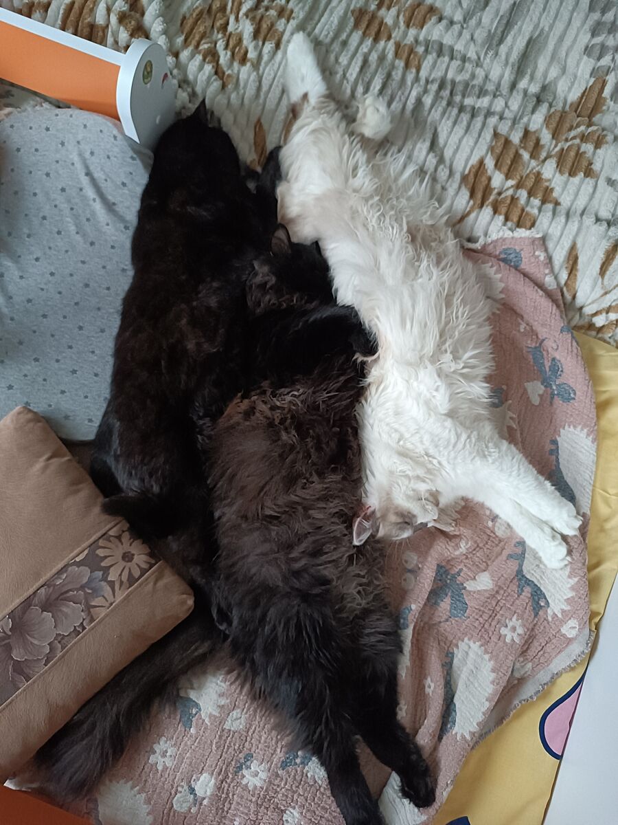 В мене їх три, але два пухнастих і одна короткошерста, але коли разом, то зливаються в одну велику пухнасту подушку