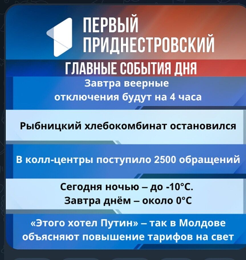 Остановились предприятия,школы,садики,тепла и воды нет в больницах и тюрьмах.Пол миллиона людей замерзает.Русо военные на панике.В капкане.Полевые кухни разбили,народу чай и кашу готовят.Чуть легче тем,у кого печка и частный дом-срезают на участке яблоки и орехи на дрова.Впереди морозы и 3 месяца зимы.От газ балонов и костров начались пожары.Страх, пожары и холод: как живет российское Приднестровье