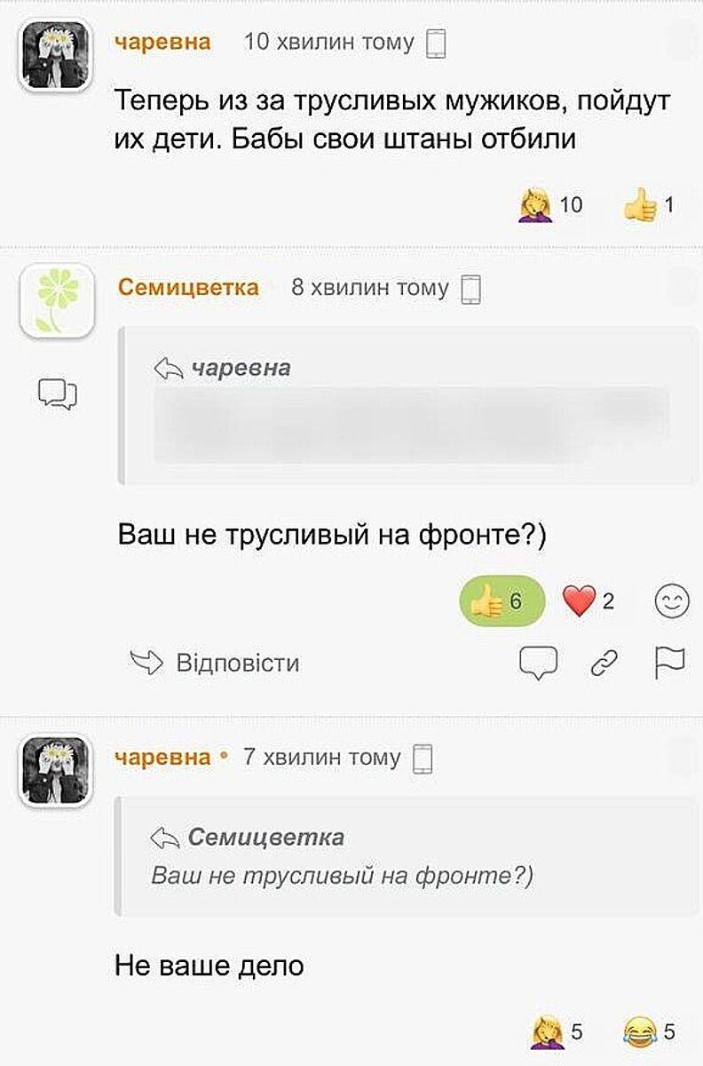 Дно попереду, ось і в цій темі жіночка волає, що все вірно тцк робить. Їй байдуже аби тільки своя дупа на дивані сиділа і голосно патріотичні вигуки в Інтернеті писати. І це серед нас ходить, з такими і ворогів не треба, свої закатують.