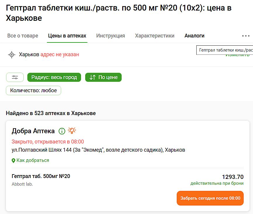 Вот цена на гептрал в прошлом феврале , но я по таблеткам выбирала наиболее дешевый вариант, без интернет заказа тоже дороже было бы .