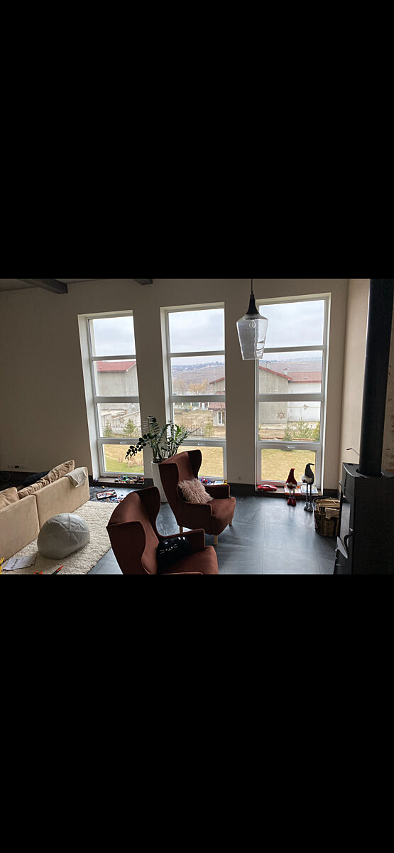 Тут ще без штор і меблів під ТВ, немає фото як зараз. але плитку видно