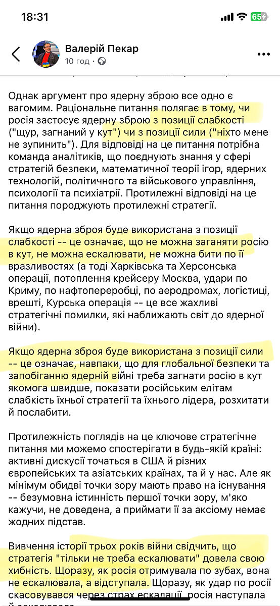 Оце про ядерну є пару тез у Пекаря, про які писали і тут