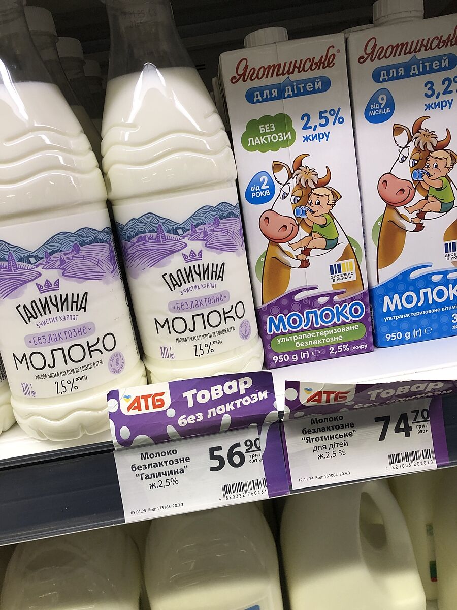 Молоко без лактозы 3,7 можно два купить по цене одного украинского. Это ужас. Куда все катится. У меня тут родители, я туда переехала. У родителей одного зп 16тыс коммуналка, жилье, продукты золотые просто. Я ощутила просто бедность какую-то зайдя в атб. А это даже не сильпо