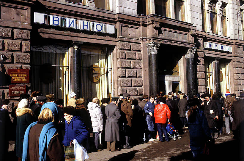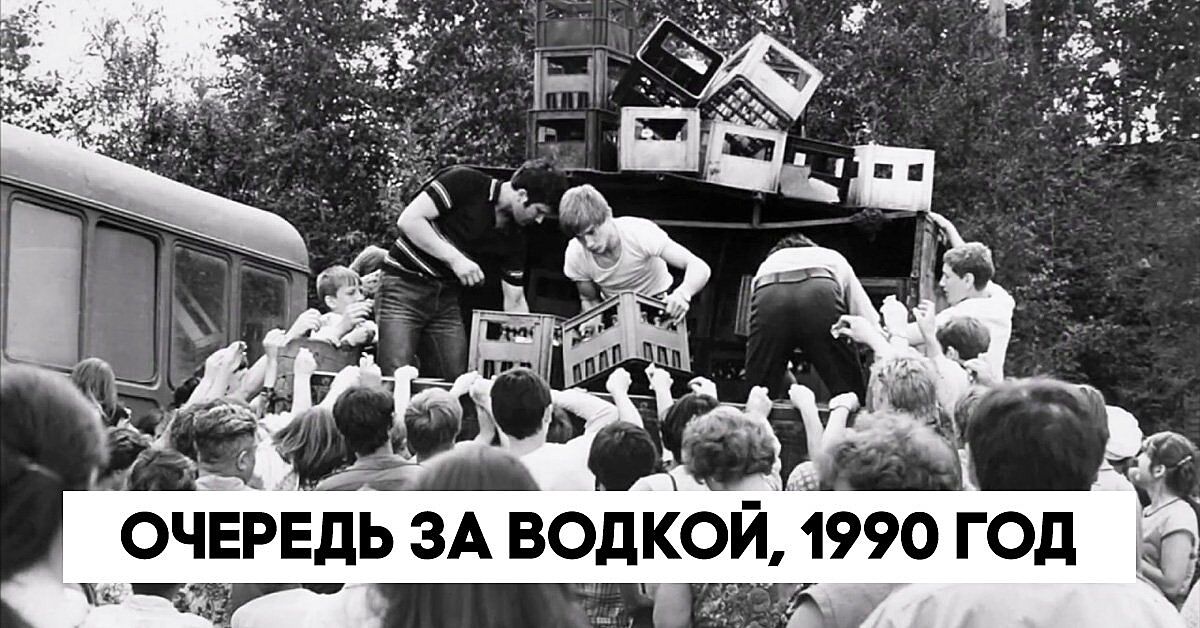 Фото 1990г.Очередь за водкой.До луны и обратно