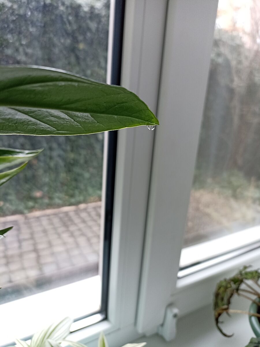 Це своєрідна захисна реакція. Завдяки гуттації у рослини навіть не опадає листя, але якщо вологість у кімнаті підвищена, то зелена маса може лопатися від надлишку рідини в клітинах. Щоб і цього не сталося, заміокулькас починає плакати, виводячи воду назовні.