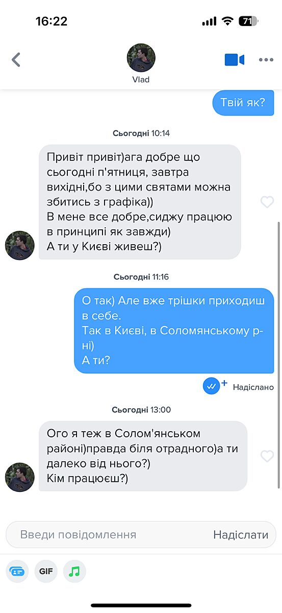 Другий також пише, привіт де живеш, написала, потім «ким працюєш?»…