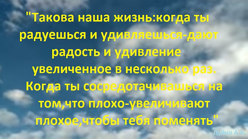 Наши мысли чувства действия и по самой большей степени эмоции-материальны и со временем воплощаются в нашем реальном мире!