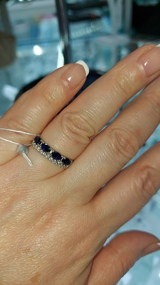 Зупинилася на одній ксблучці. Біле золото і сапфіри.Маю сережки з сапфірами. Під них каблучку обираю. Мені дуже пасує синій колір. Як зі сторони? Не купила, думаю ще.