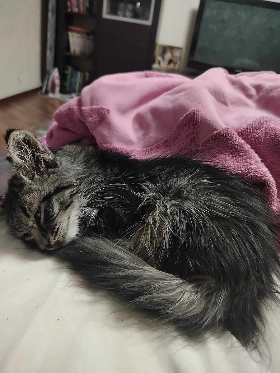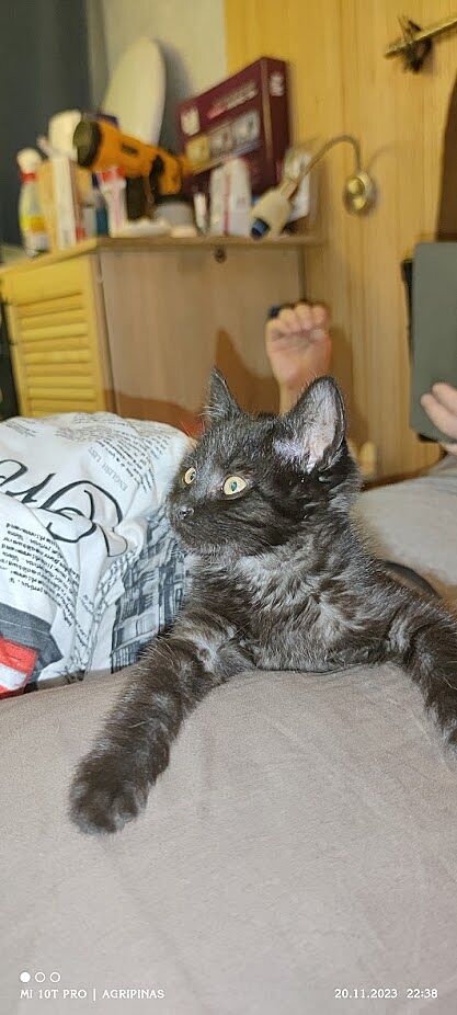 Сын мой (12 лет на тот момент ) 2.5 года назад шел вечером домой, летом, с самокатом. Должен был быть быстро, а его нет и нет. Звонит. Котенка нашел. Выскочил ему под колеса. Слезы, сопли.... Короче, вот. Выросло.