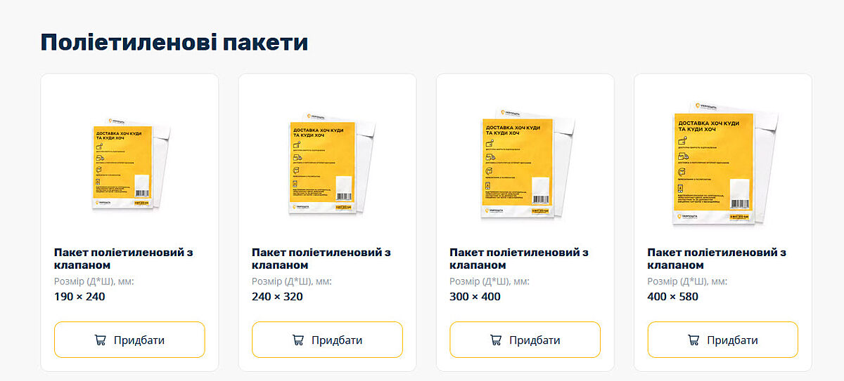 так, там є 2 розміри конвертів-пакетів, які коштують 10 копійок. поліетіленові. вони невеликі, але коштують дійсно по 10 копійок