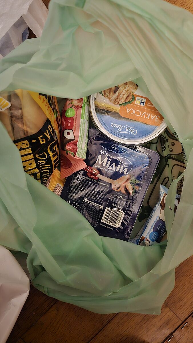 Есть рис ,гречка,картошка,огурцы,помидоры,куринные бедрышки,свинное мясо ,булочки для бургеров и какие то консервы