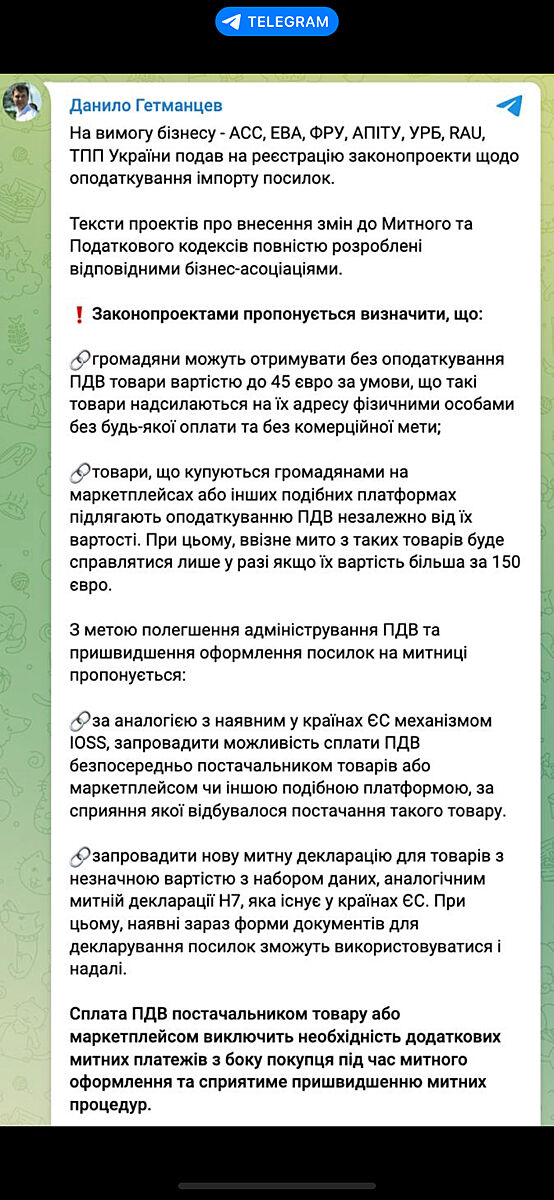 Зелені гондольєри вже готові брати мито зі всіх посилок