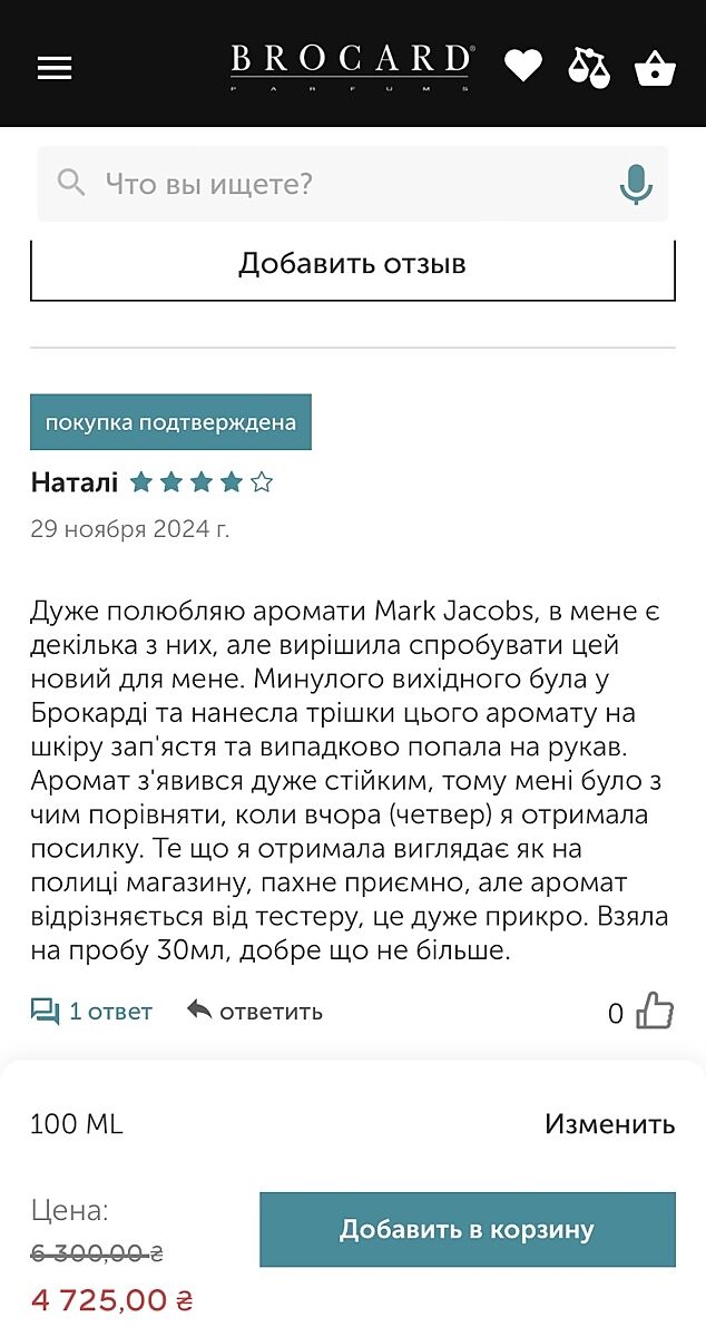 Уже второй раз покупаю парфюм, что понравился во время затестов. А при покупке совсем не то(